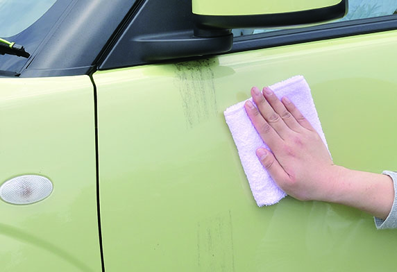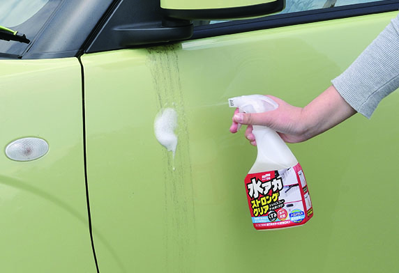 只需将本品喷射在有水垢的地方,轻轻擦拭便会瞬间去除。并且不会产生残留白色粉尘,所以是不需要第二次重复擦拭的轻松便利型产品。一般洗涤剂不能去除的顽固水垢,污渍,通过化学分解,轻轻松松干净去除。采用椰子油的环保配方。不含研磨剂成份,安心使用不会损伤车漆。并散发出水果清香,解决以往产品使用操作时的异味烦恼。 *本品适用于所有颜色的车漆车身。