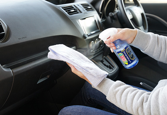 噴後僅需擦拭的簡單操作,不僅去除手印等汙垢,菸垢等異味也能去除,並且有除菌效果的車內萬用清潔劑。 抗菌・抗病毒效果約持續一周*。包覆住附著在布面與墊子上的灰塵,以防四處飛揚。 * 並非所有細菌和病毒都有效。 * 根據本公司內部測試。