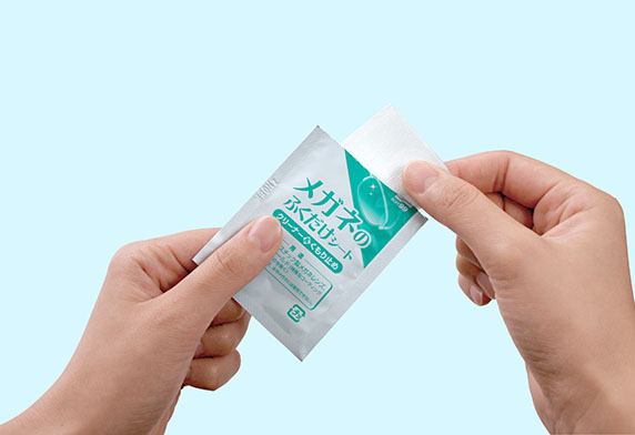 本品为速干性湿巾式眼镜清洁剂。只需轻轻擦拭就可将眼镜上的雾气‧污垢‧指纹‧油污等彻底清洁干净,同时不会产生擦拭痕迹,并有防雾‧除菌的功效。便携式单片包装。也可使用于树脂镜片及镀膜镜片。