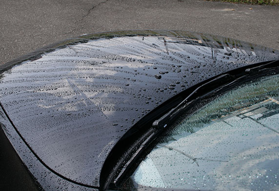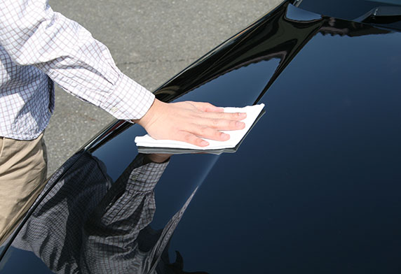 低摩擦力针孔加工的易擦拭纸巾上浸润硅油以及强密着型的蜡,拨水,耐久性能优于以往产品。是强化型”打蜡魔术布”。 耐久型达三个月。使用洗车机洗车5次后仍能发挥效力。 (*本公司实验结果)采用形状记忆贴纸包装,更容易抽取。